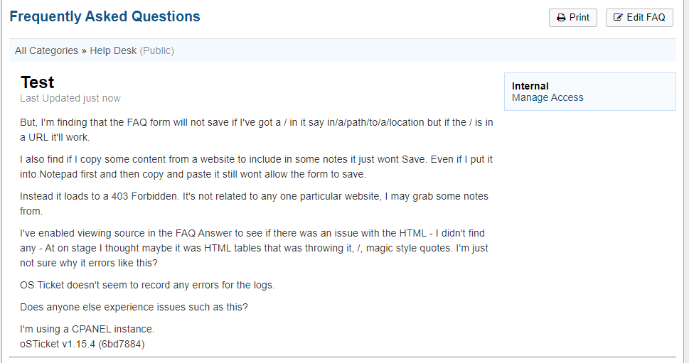 But, I'm finding that the FAQ form will not save if I've got a / in it say in/a/path/to/a/location but if the / is in a URL it'll work.