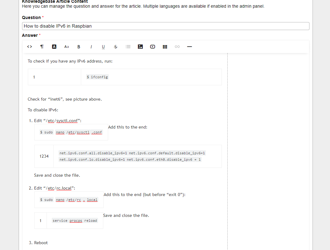 I've been using the FAQ section to make technical notes for matters agents need to follow - Say, paths they need to navigate to and make configuration changes on a Linux server.