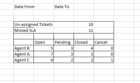 Want to have all agent tickets summary, like Pending, CLosed tickets, canceled tickets, open tickets in Dashboard. Also "Un-assigned Tickets & Missed SLA