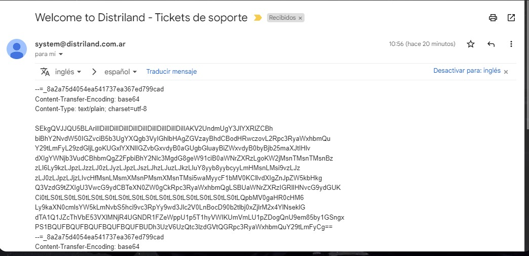 Al abrir el correo luego de registrar un usuario en el sistema no recibo un link de confirmación sino una texto plano sin sentido aparente para el registro.