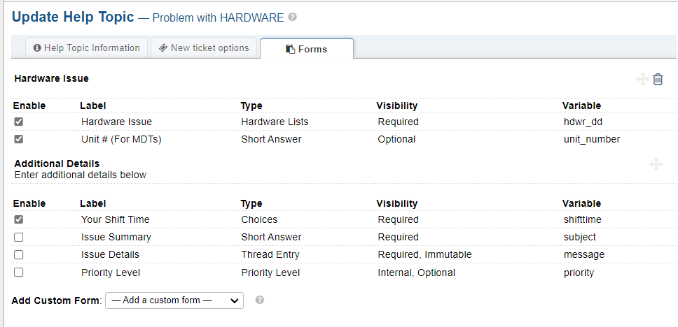 I was thinking something on the ticketing side with the client is adding extra fields from the ticket.