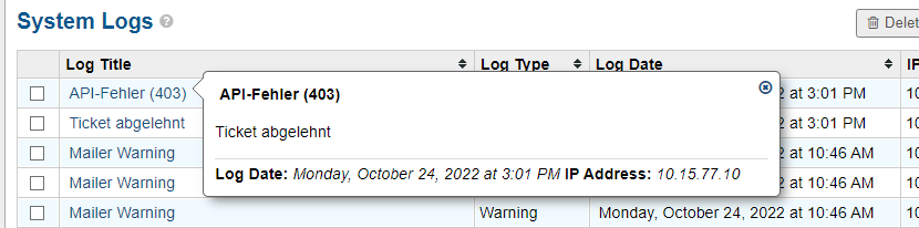 I also see in the System Logs that it keeps repeating to Deny the Ticket.