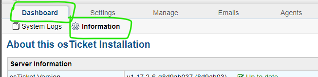 Post a screenshot of Admin Panel > Dashboard > Information.