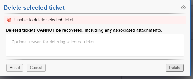 Does your agent account have delete permissions on the department that the ticket is located in?