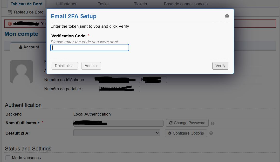 for the Agent, I activated it while the ticket system does not connect to office 365. So I have to configure the 2FA and I do not receive the Email sent for email verification. I need to disable it.