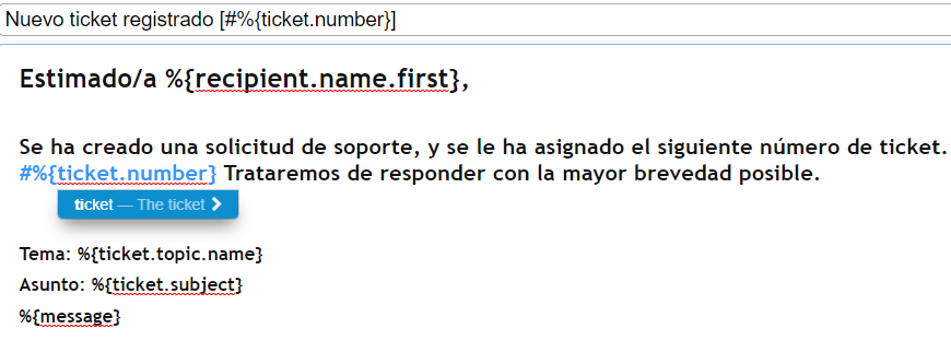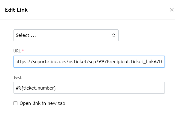 Hello, I am carrying out tests and configurations in the osTicket tool, but I am finding that the hyperlinks that can be placed in the response templates do not work correctly, they are always throwing errors between 400, 404 or 403.