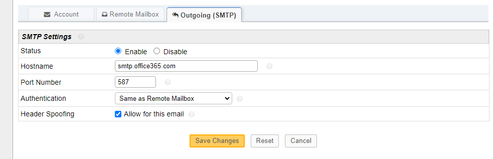 We are configuring the oauth2, it caused the below error message when I submit the outgoing (SMTP) changes, and the authentication as the same as Remote mailbox.