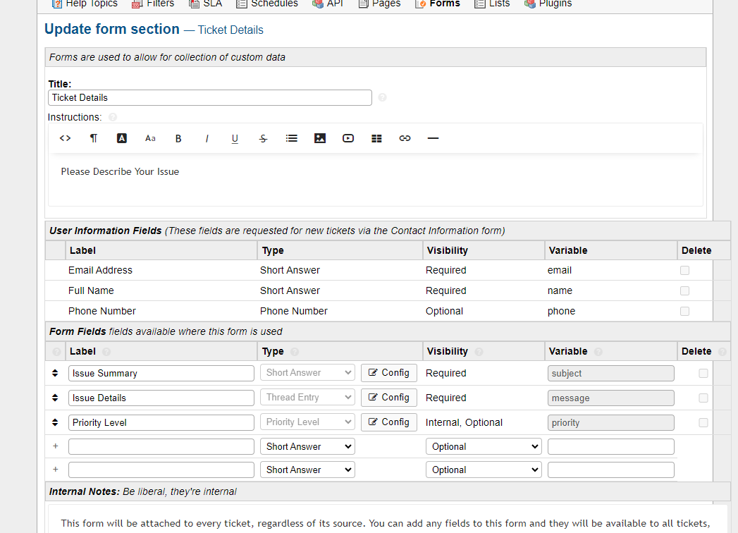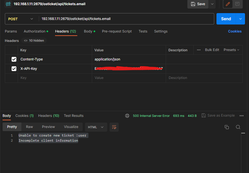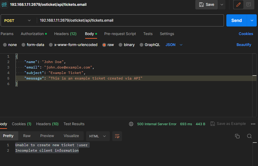 I've read quite literally every other topic on this website related to this exact error message with no success. This is a clean install of osTicket. I have changed nothing about required fields in Admin Panel -> Manage -> Forms, other than making 'message' mutable. I am including each required field in my POST request.