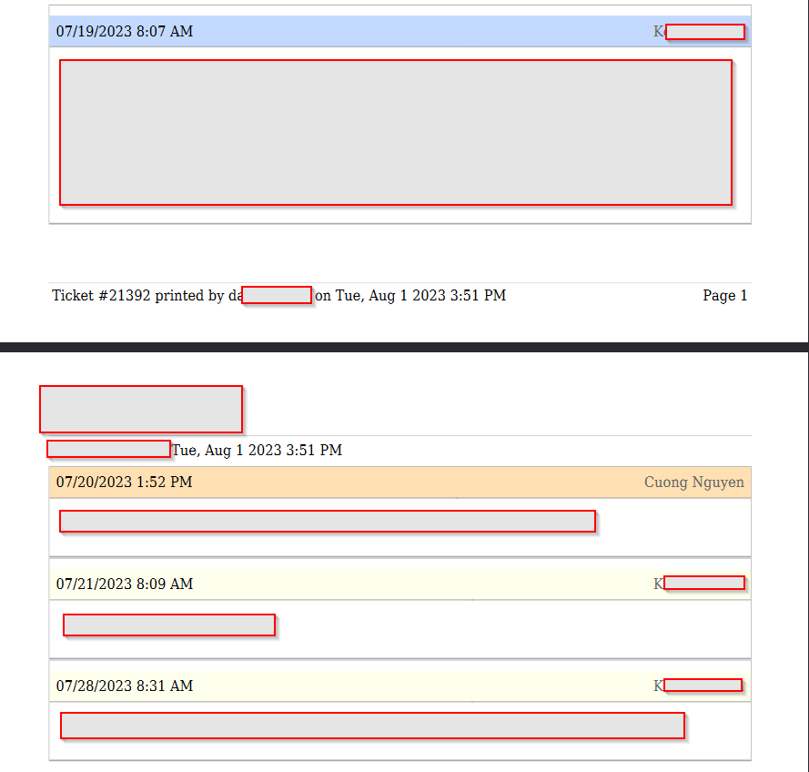 User is experiencing an issue that order of the ticket notes when viewed on osTicket and when its printed out. Couldn't find a way to change or modify the order when exported.