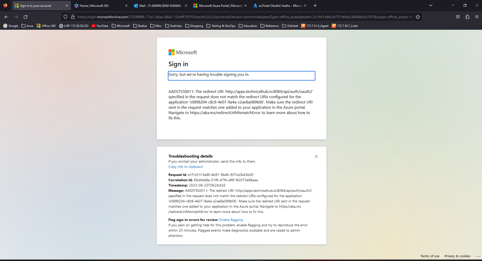 when i am trying to submit iam getting login.microsoftonline.com and given the username and password at the next window, i am getting error. attaching screen shots error & links...