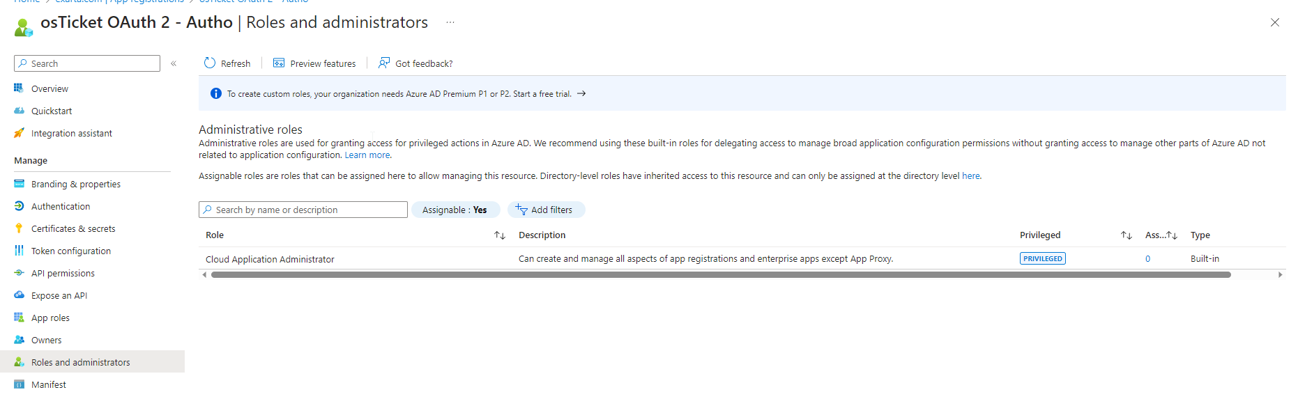 And when I checked the Administrator-Roles this is what I am seeing.