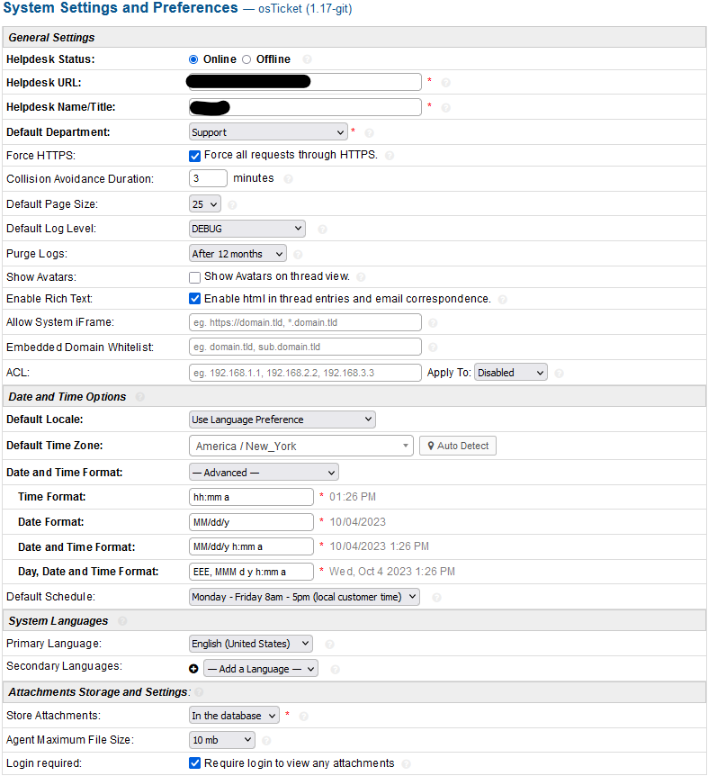 That all looks correct so far. Can you change your Admin Panel > Settings > System > Date and Time Options > Date and Time Format setting from "– Advanced –" to the default option of "Locale Defaults", Save Changes, and retest? If that doesn't work then your server/system is having trouble converting the timezone somehow.