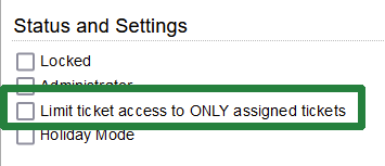 sya You could make two teams and assign agents to the respective team. Tickets could then be assigned to the teams and each agent would view them accordingly. Note that this doesn't prevent people from viewing the tickets by searching or using the Answered or Unanswered queues - you'd need to select the box in each agent's profile if this is what you need: