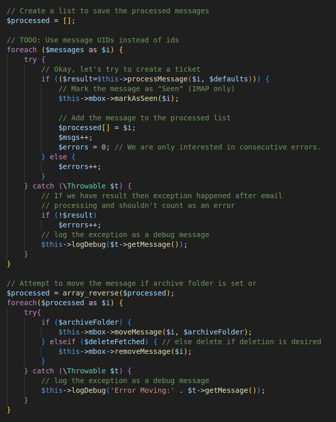 I recently installed the new osTicket 1.17.5 and noticed an issue where emails fetched from Gmail using IMAP and OAuth2 are not being fully processed. Some emails are missing in the ticket system. While I initially thought it was a Gmail issue, the problem does not occur on our old system (version 1.15).