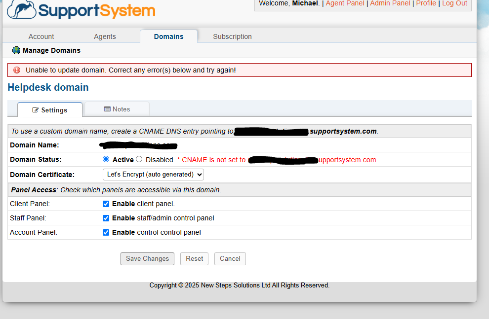 We are using a trial account and would like to change the helpdesk domain as our customer's email protection service is sending all of the emails from @.supportsystems.com to spam.