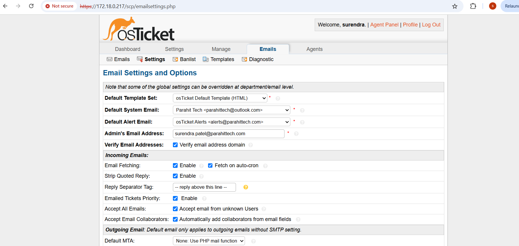 Hi KevinTheJedi As you suggested, I have updated osTicket and the PHP version. However, it is still not fetching tickets from the Microsoft email account, even though I can successfully fetch tickets from other email servers using the same settings.