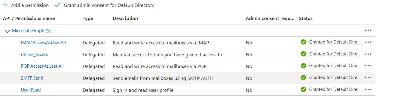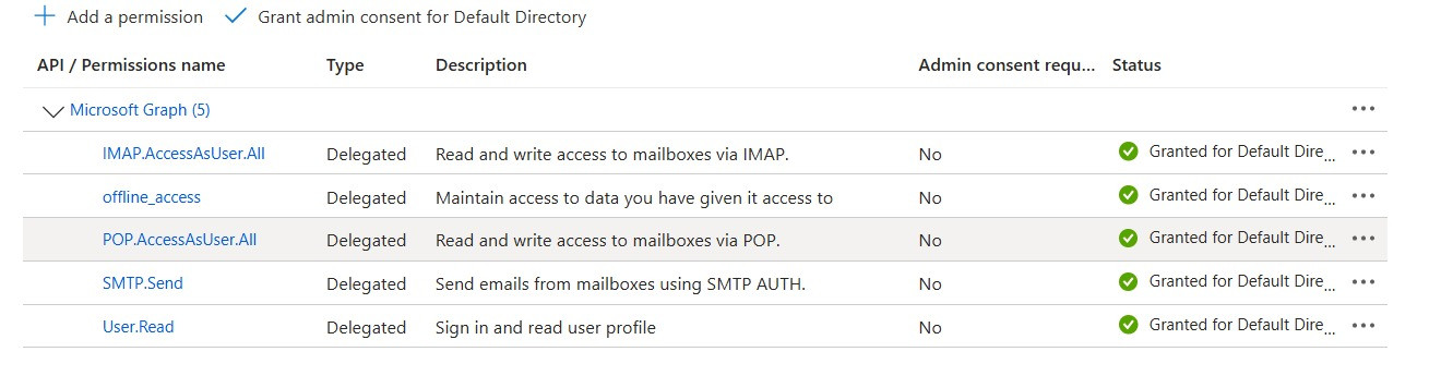 offline_access https://graph.microsoft.com/IMAP.AccessAsUser.All https://graph.microsoft.com/POP.AccessAsUser.All https://graph.microsoft.com/SMTP.Send