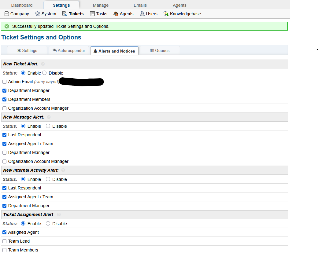 After updating oath 2 plugin to version 0.6 I still facing problem in receiving E-mail alerts for new tickets not received by some of the team members but received by others , as department manager I don't receive new tickets alerts but always receive activity alerts , settings as showing in attached photos , why we are not able to receive alerts for new tickets continuously!!!