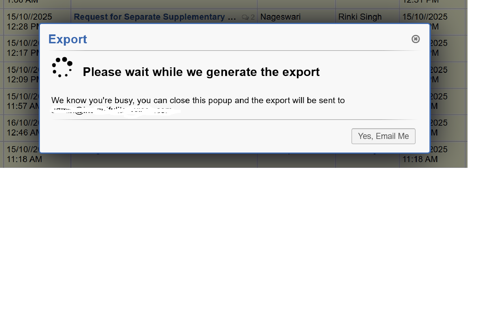 Although I am getting one Popup which is asking to export or sent email. nothing chosen so file exported, but no data