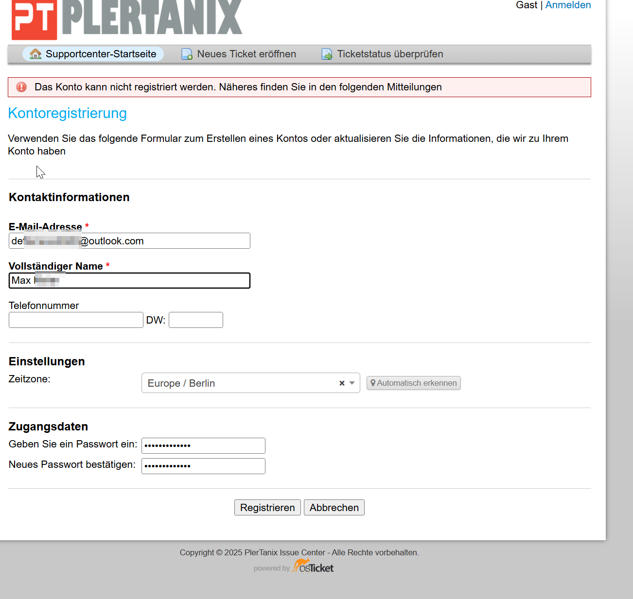 I have reinstalled OSTicket for the second time now, and every time I try to register as a customer, I get the following message (see screenshot).