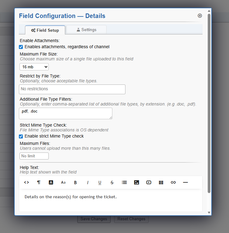 Ticket Creation: How can I ensure these are the only file types allowed when a user first opens a ticket?