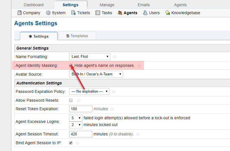 Is it possible to hide staff name from the response when the client views the tickets online? Thanks
