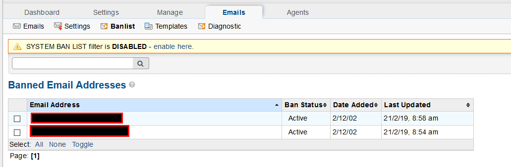 When I visit the Ban List I get the following Warning at the Top of my Screen: