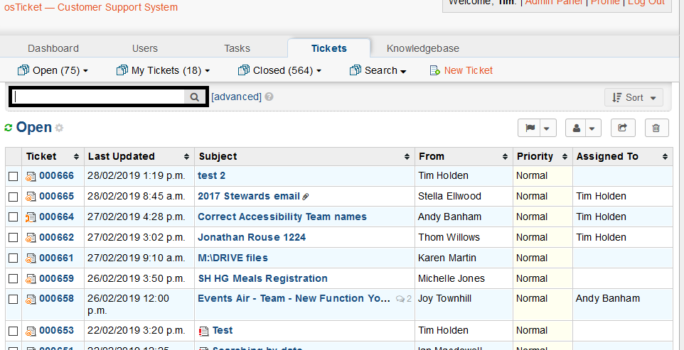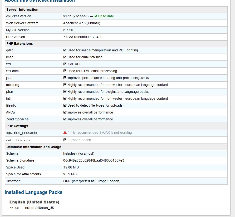 We have been using OSTicket for nearly a year, have done at least one upgrade during that time. We have just upgraded to 1.11 and the from field has dissapeared from the ticket lists. The icon for multiple watchers is there, just not the raising users name. It still appears fine on other forms but the lists it is just missing. I have attached a screen shot as well as the info page.