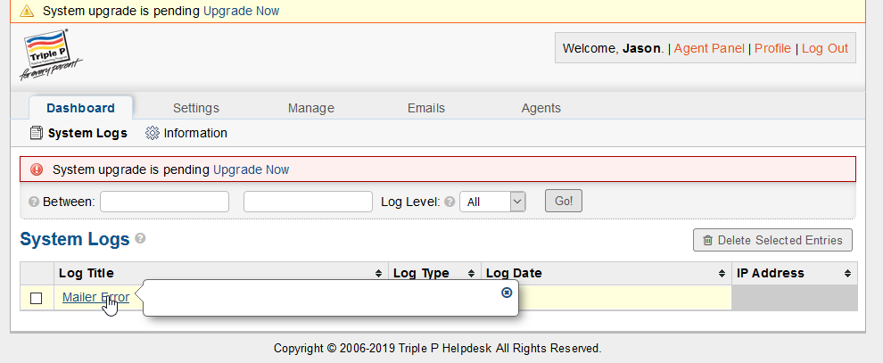 Upgrading to 1.10 I get a weird blank Mailer Error (refer to screenshot attached).