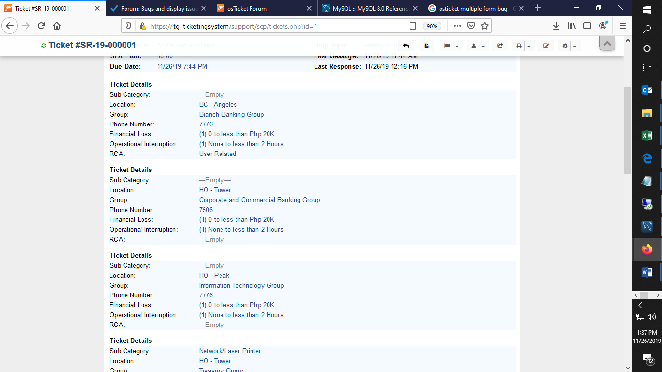 There were multiple forms displayed in one ticket. This happened when we restored our db backup into another server.