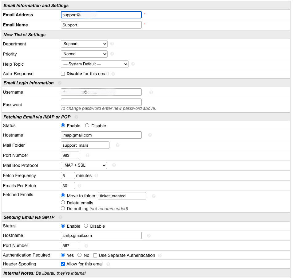 In my gsuit setup I have an support@ alias for my email address. I want to use this email alias for the ticketing system.