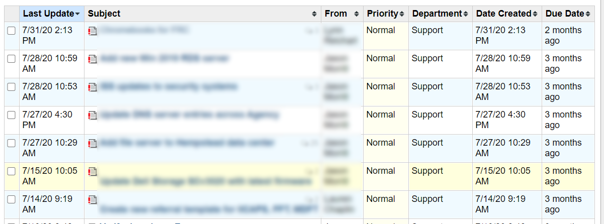 Running into a problem where tickets that were created months ago, and still worked on regularly, are buried in the list of tickets - even when they were updated yesterday. It's as if the 'Last Updated' column is looking at the 'Creation Date' of the ticket.