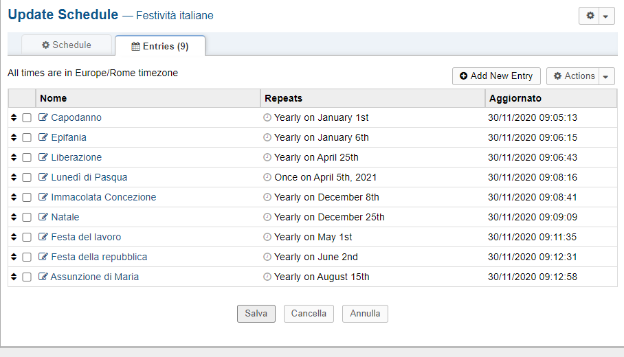 It results that using "Timeline Diagnostic" function in /scp/schedules.php, it goes in error: