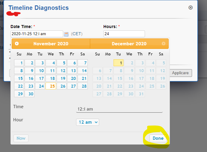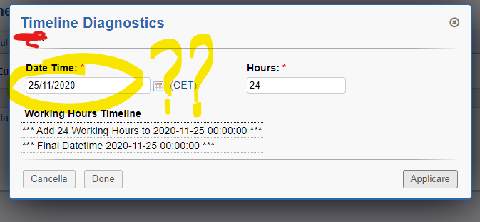 Using Schedule Diagnostic function, I cannot simulate selecting a precise hour because of some strange limit on timeline diagnostic feature, I cannot select time.