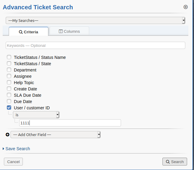 In my custom site I need create an url to open osTicket (in new tab) with tickets list filtered by Users' custom field