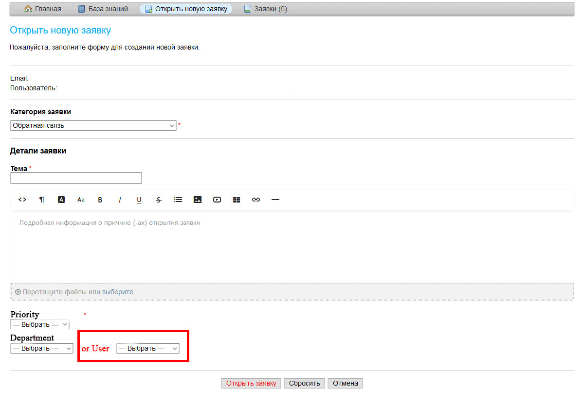 Also Users generally should not decide what Department a ticket will go to either. That would be decided by the osTicket administrator and tied to the Help Topic that they select.