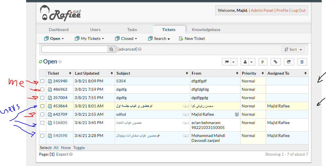 My question is that firstly, why osTicket system doesn't assign my tickets to anyone but assigned the other users to me, I mean how it detects ?!!