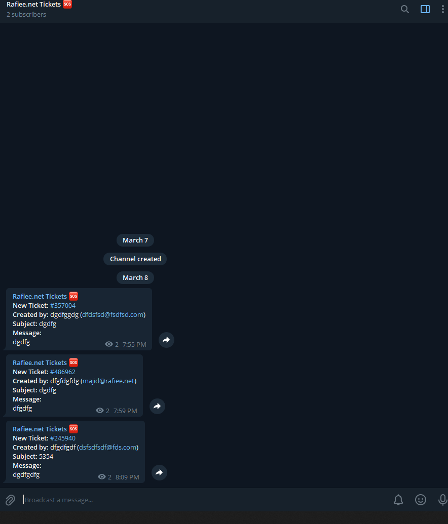 As you can see in the following screenshot, the tickets empty Assigned To section are those I created myself anonymously and I received the notification in Telegram, and those with "Majid Rafiee" as Assigned To, I never received any notification.