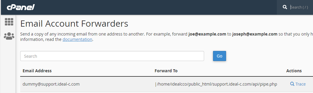 I have created an email forwarder in CPANEL from the email address to the path to pipe.php in my server.