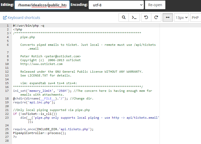 Document I referred to: https://docs.osticket.com/en/latest/Getting%20Started/Email%20Piping.html