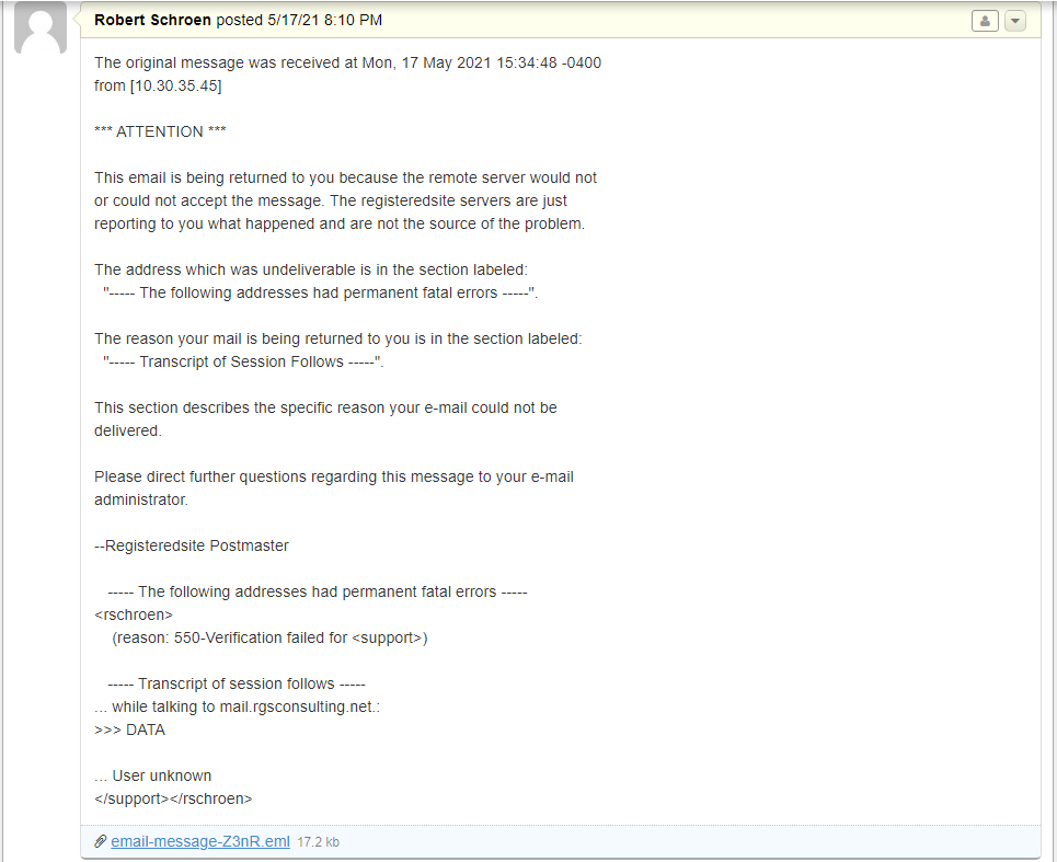 We are running version osTicket v1.15..2 and are getting many but not all messages of not being able to deliver messages listing the address of the email address without the @<domain>