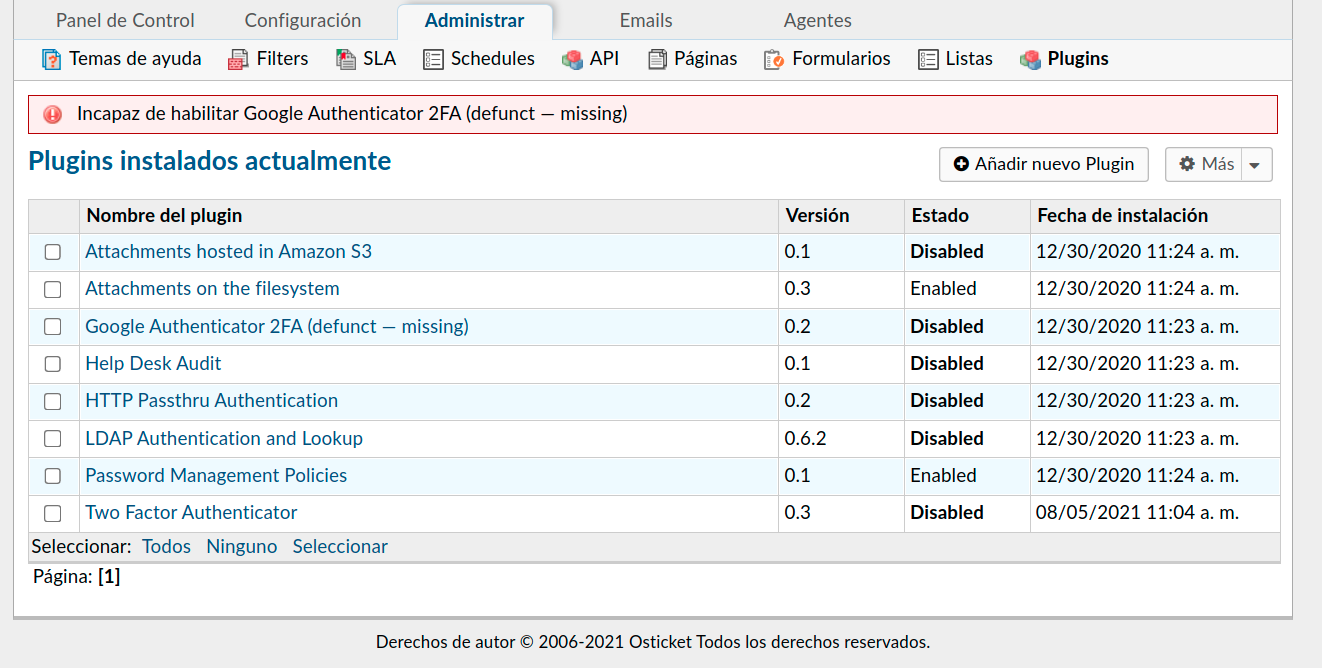 ntozier New 2FA plugin is "Two Factor Authenticator" whereas previous one is "Google Authenticator 2FA" - as far as osTicket is concerned, they're completely different plugins. (I know you know this, was just clarifying the previous post 😇 )