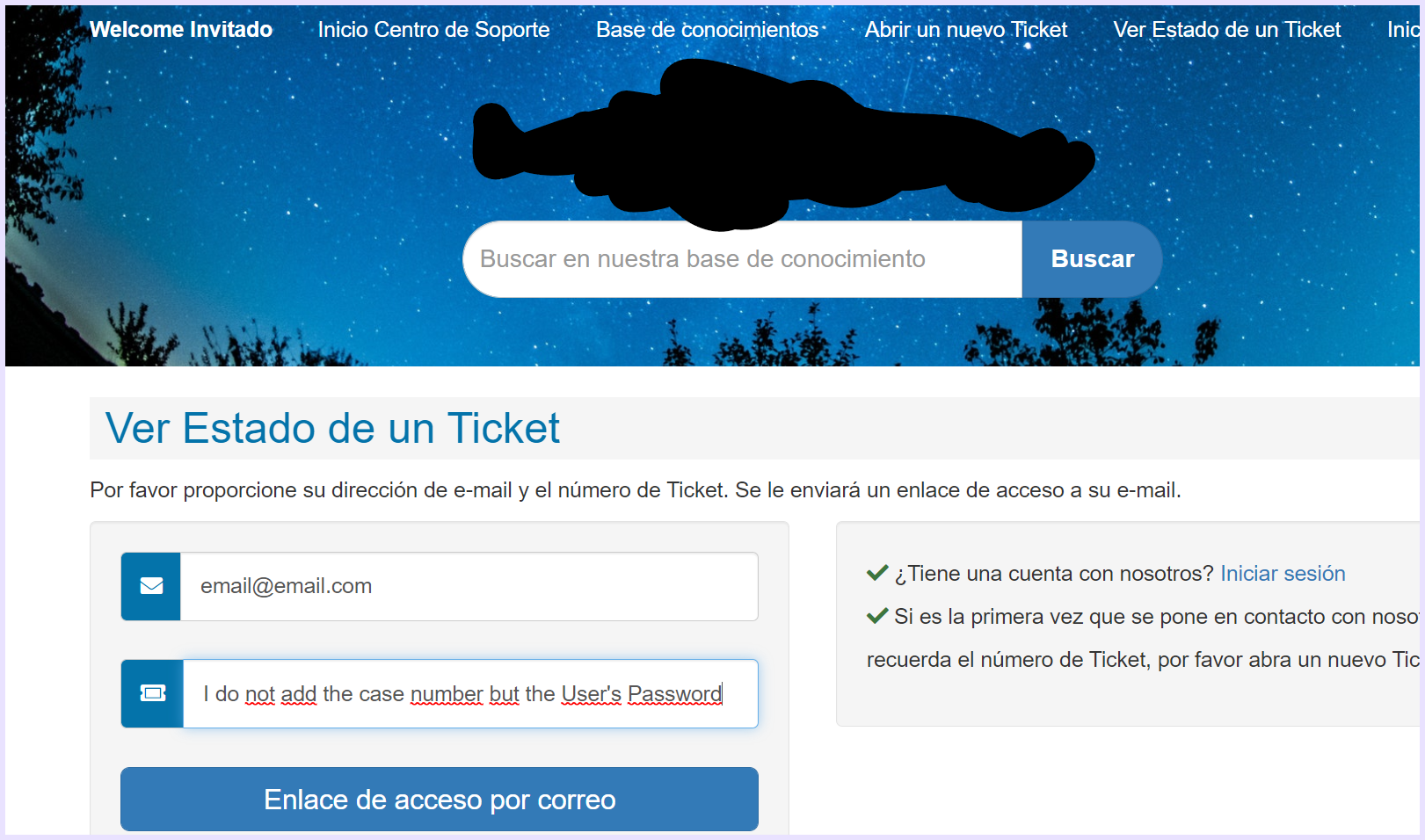 By mistake, when I entered the page to check the status of a ticket (view.php) in the email field I added my email and in the Ticket Number field I put the password, when reloading the page I had logged in with the user account.